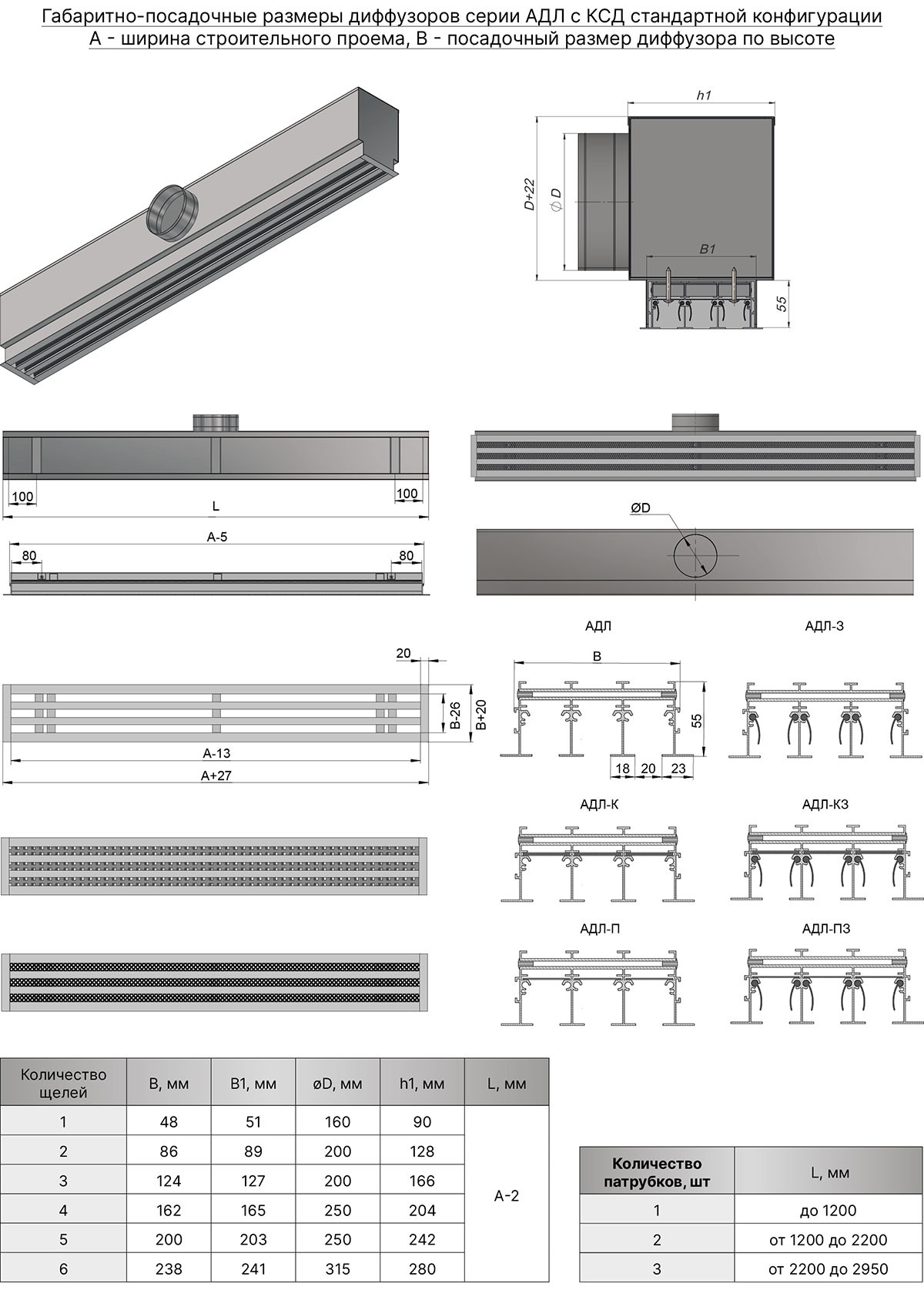 Щелевой диффузор АДЛ-КЗ применяется в приточно-вытяжной вентиляции. Данная модель является самой конструктивно наполненной в серии АДЛ. В ней есть и ламели, и клапан расхода воздуха, регулирующие поток и объем поступаемого воздуха в помещение. Могут быть самостоятельным изделием в виде одиночной секции или ее составной частью. После монтажа рамка решетки остается видимой, закрывая проем.